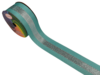 Rolo de fita decorativa Sinimbu verde com listras douradas, 38mm de largura e 10 metros de comprimento