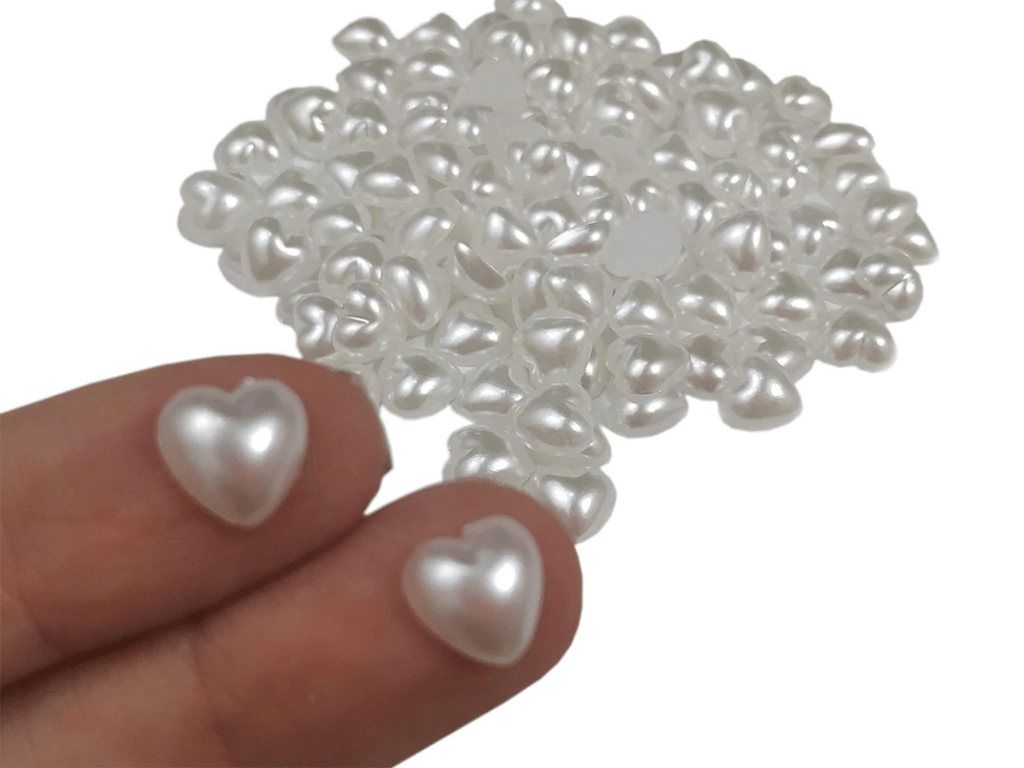 Chaton Pérola Coração Branco 10mm - 100 Unidades