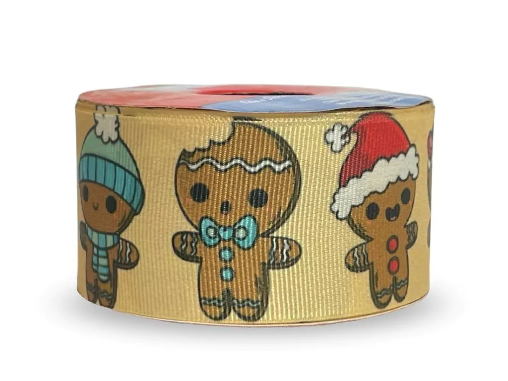 Fita De Gorgurão Estampada 38mm Bela Fita Nº9 Boneco de Biscoito