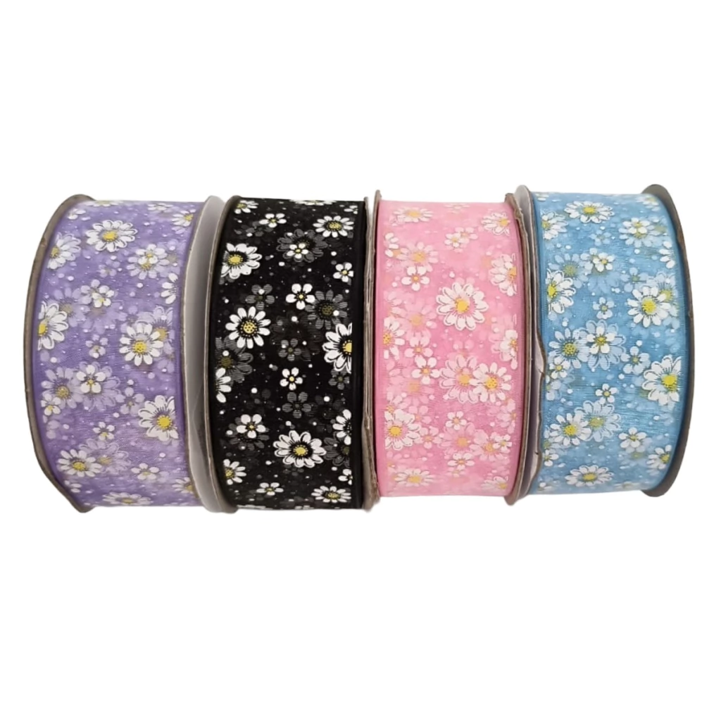 A Fita de Organza com Flores 38mm é perfeita para quem deseja dar um toque delicado e sofisticado aos seus projetos. A organza leve e translúcida, combinada com flores aplicadas, cria um efeito elegante e romântico que valoriza laços, arranjos, tiaras, embalagens especiais e trabalhos artesanais.
