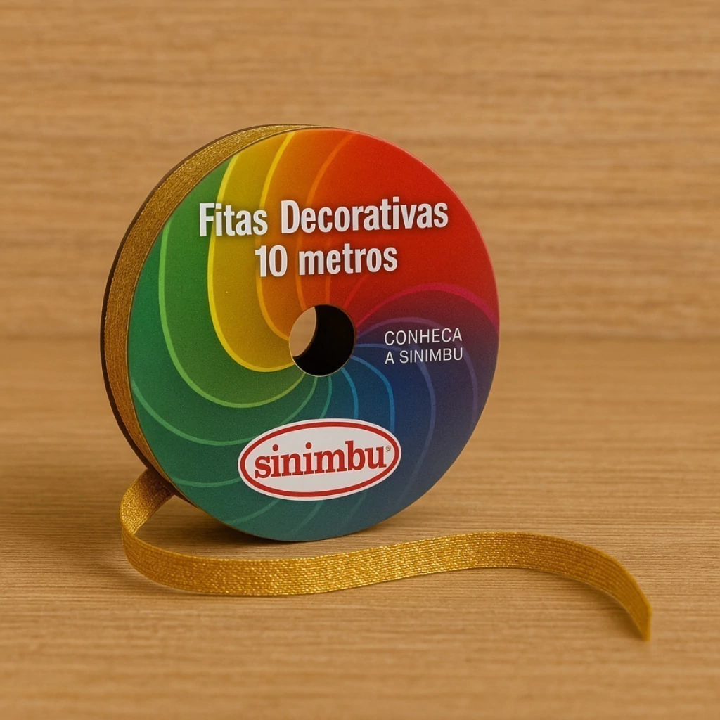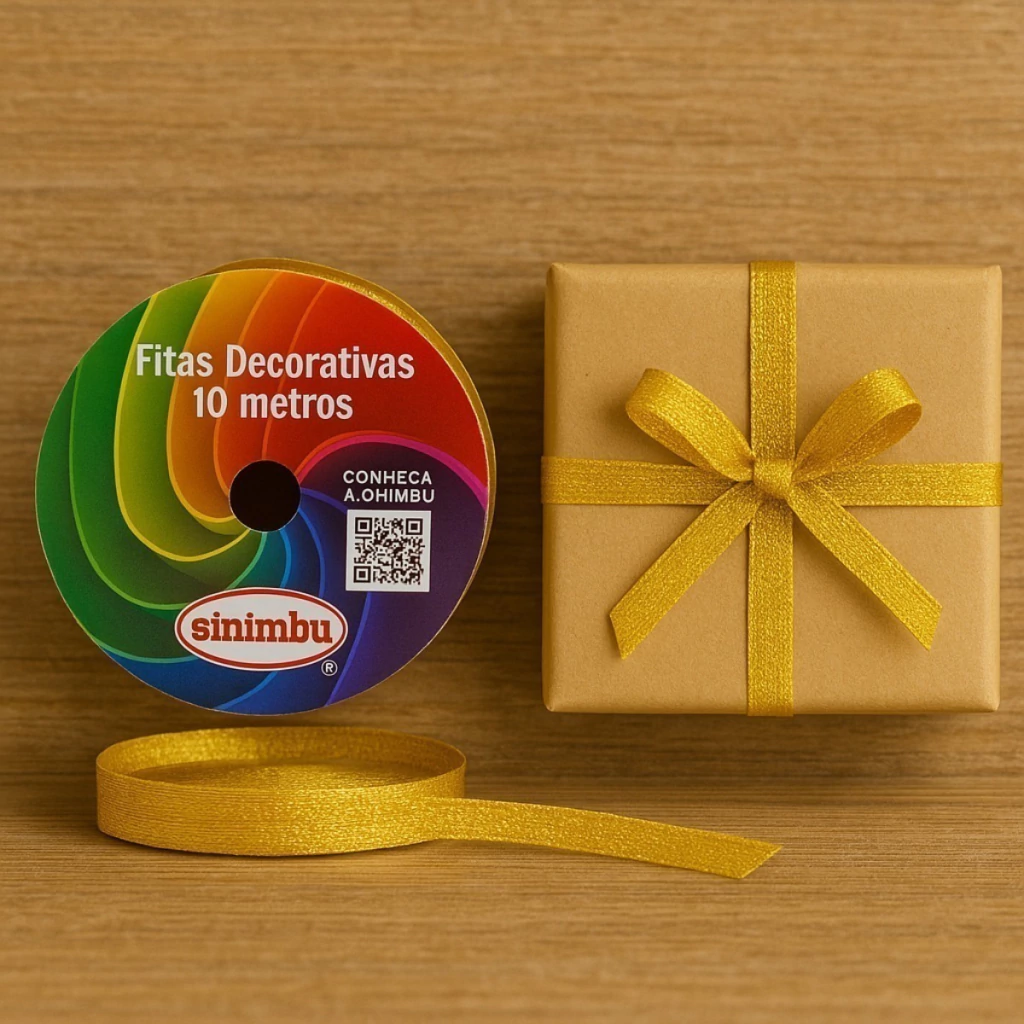 Aprimore seus projetos com a Fita Decorativa Metalizada Sinimbu 1300 de 09mm na cor Ouro, rolo com 10 metros. O brilho uniforme da fita metalizada facilita laços firmes e acabamentos elegantes em tiaras, convites, lembrancinhas, embalagens e arranjos. Maleável e prática para o dia a dia do ateliê, dá um toque moderno sem pesar. Linha com alta procura e reposição limitada — garanta a sua antes de acabar. Leve a sua agora.