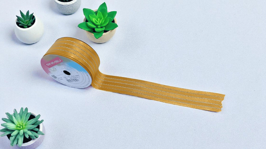 A Fita Sinimbu 1997/38 – Cor Ouro (38mm x 10m) eleva o acabamento de laços, embalagens e projetos de artesanato/DIY. O tom dourado entrega elegância e realce visual em lembrancinhas, convites, cestas e kits presenteáveis. Com 38mm de largura, permite laçarotes volumosos e bem definidos; o rolo de 10 metros garante rendimento e padronização de cor e acabamento em séries de peças. A estrutura têxtil facilita a modelagem e contribui para que o laço mantenha o formato, oferecendo resultado limpo e profissional para uso doméstico ou comercial.