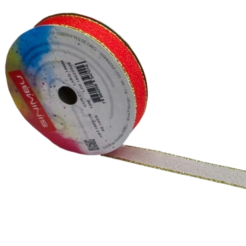 Conteúdo da embalagem: 1 rolo (16mm x 10m). Marca: Sinimbu. Ref.: 1800. Cores: Vermelho/Branco (dupla face).