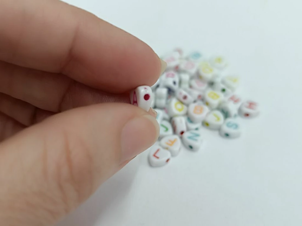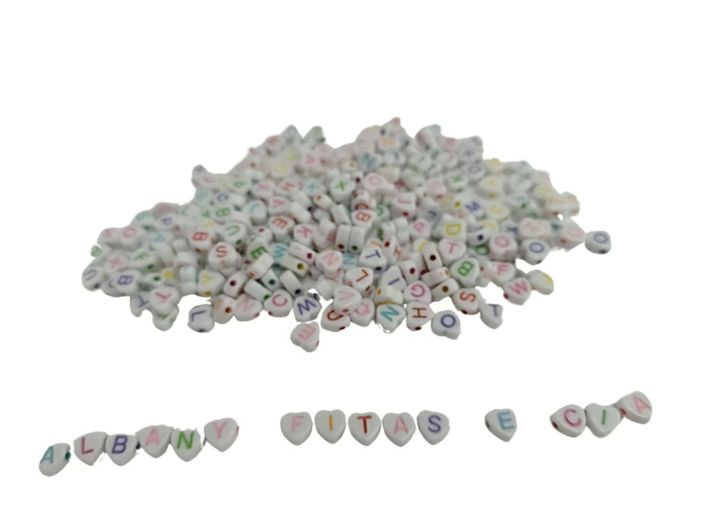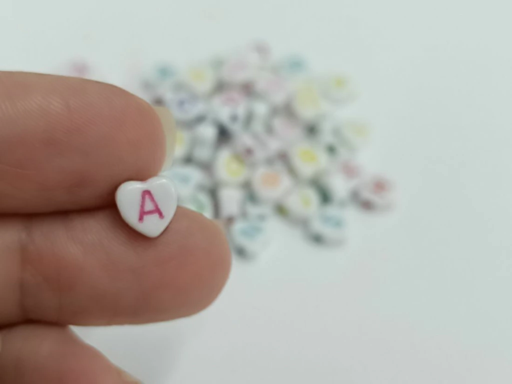 Deixe seus acessórios mais encantadores com a Miçanga de Letra em formato de Coração! Com cores sortidas e acabamento delicado, essas miçangas são perfeitas para dar um toque especial às suas criações artesanais.