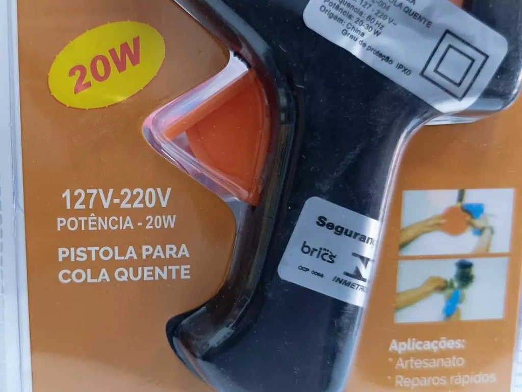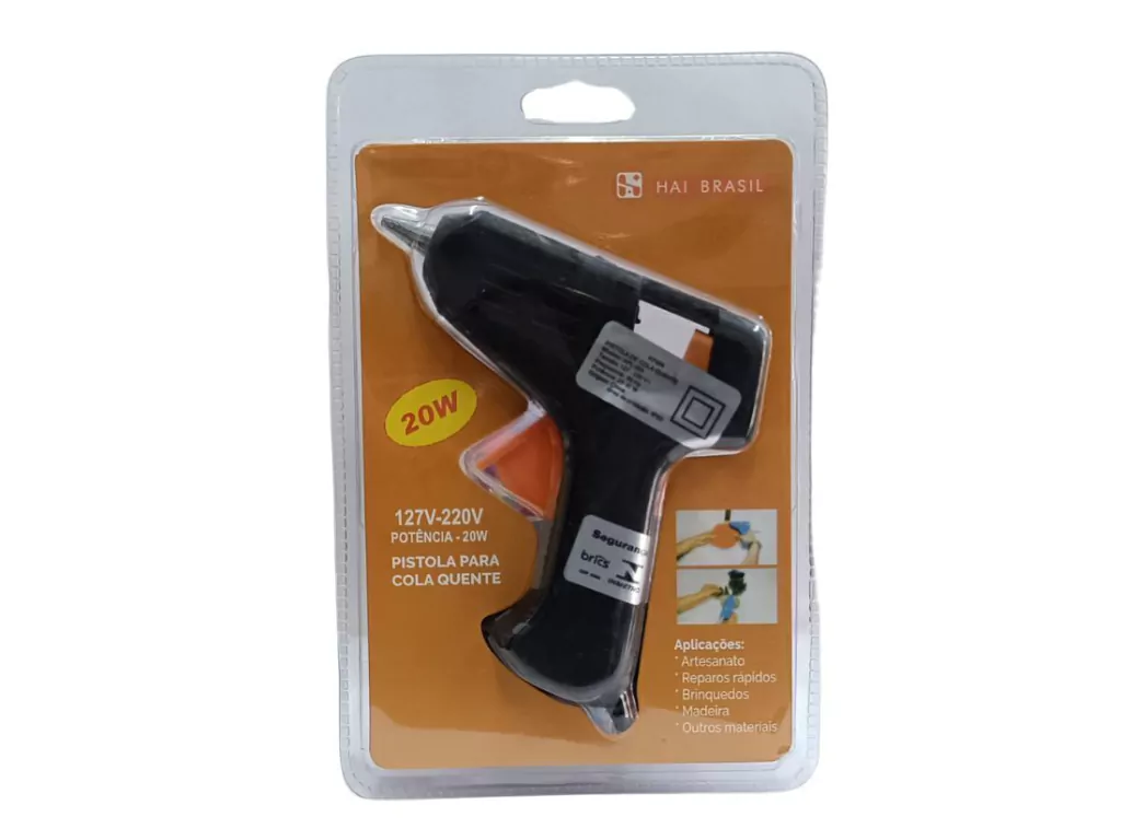 Pistola Para Aplicar Cola Quente Bivolt 20W Aplicador térmico indicado para derretimento de bastões de adesivo termoplástico com diâmetro de 7mm. Sua carcaça elaborada com plástico de alta resistência proporciona maior durabilidade.